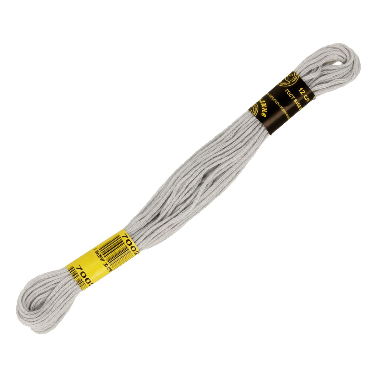 Нитки для вышивания " ПНК им. Кирова" мулине 100% мерсеризованный хлопок 8 м №7002 св. серый