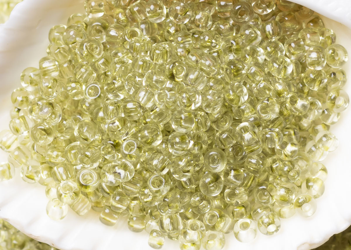 Бисер Чехия круглый 10/0 50 г 01252 прозрачный бледный желто-зеленый зольгель окрашенный